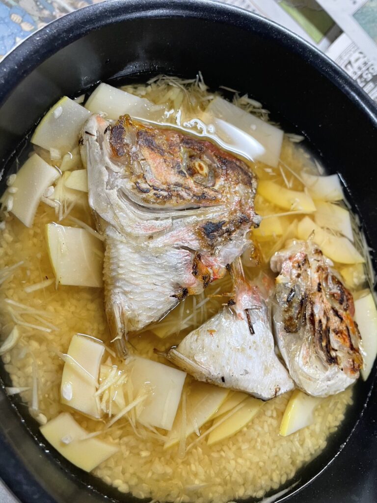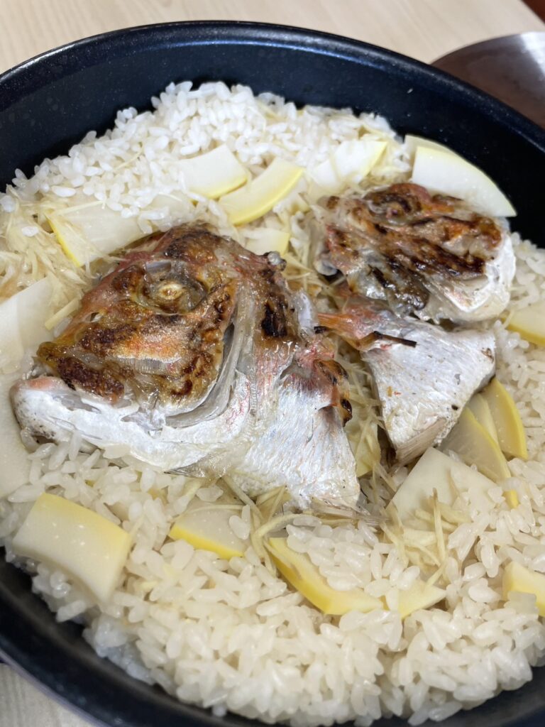 6〜7枚目はレンコダイのカブトと旬のタケノコで鯛めし🍚
